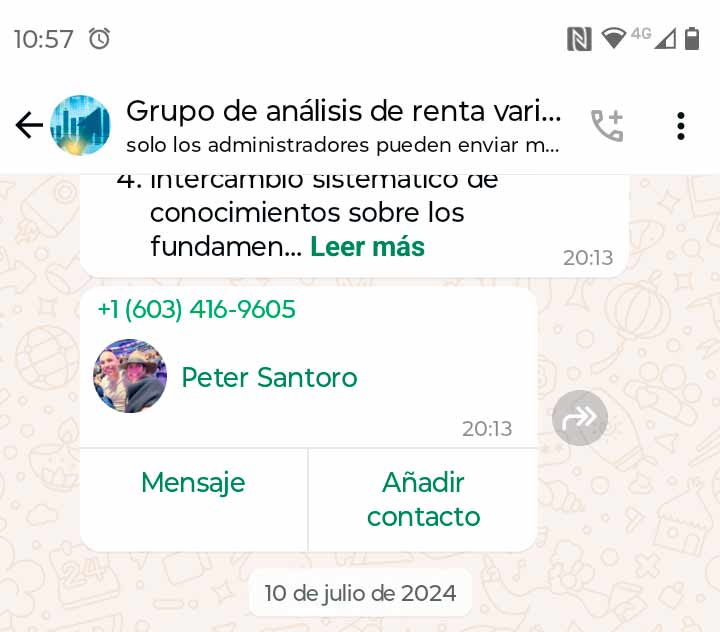 PETER SANTORO y su entrada al grupo de whatsapp con otro número