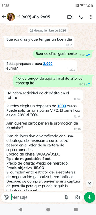 Cuando intenté retirar mis ganancias, me encontré con el primer gran problema: no me permitieron sacar mi dinero de la plataforma. Me pusieron excusas vagas y confusas, como la necesidad de completar una cierta «actividad» antes de poder procesar retiros. En ese momento, sentí que algo no iba bien, pero el equipo de atención al cliente me convenció de que todo era parte de los procedimientos de la plataforma. Fue ahí cuando empezaron a presionarme con una nueva «oferta única».